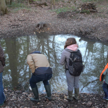 Quatre étudiants de l’Institut Supérieur de l’Environnement, ont accompagné cette sortie qui nous invitait à observer une mare nouvellement restaurée et ses habitants : grenouilles, tritons et autres amphibiens.